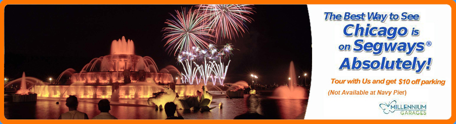 The entrance to our section of Millennium Garage is found only from Columbus Drive. Please do not enter on Michigan Avenue as that is a different garage and the vouchers which we offer are not valid. Once in the garage proceed west to the Millennium Park side of the garage. Then once past the entrance gates turn left, heading south to Monroe Street. Park on level 2. Please follow the orange Absolutely Chicago Segway Tour signs. We are located in the lobby of level 2 of the garage.